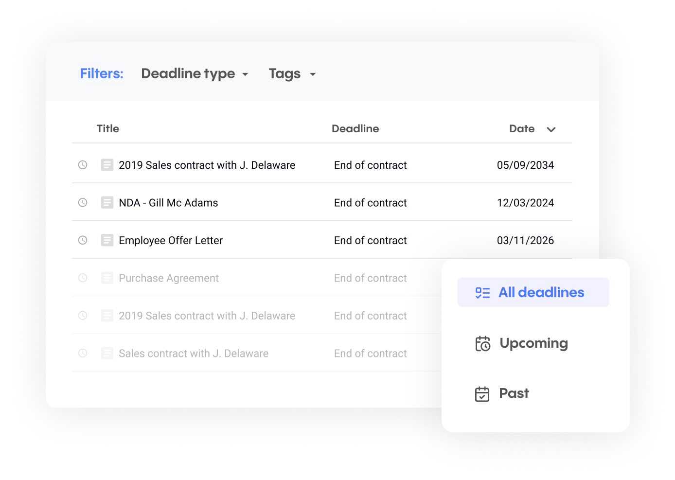 Concord automates repetitive tasks like creating contracts, uploading documents, getting agreements signed, and tracking deadlines — freeing up your team members to devote more of their time to higher-value activities.
